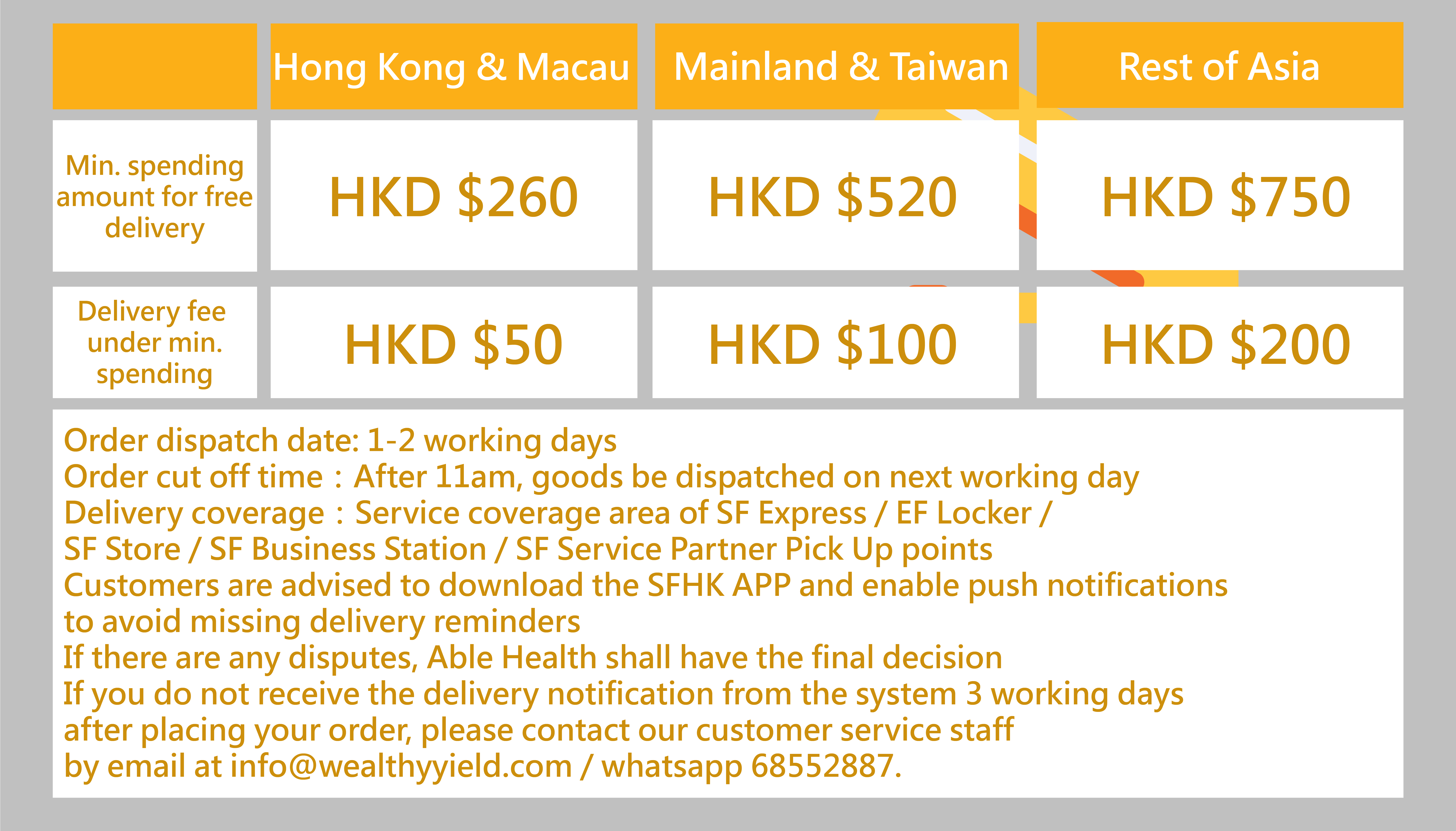 2. A SF Express waybill number to the customer will be sent to your email once the shipment is sent. Shipment progress can be checked with the waybill number by using SF Express website. If you do not receive the delivery notification from the system 3 working days after placing your order, please contact our customer service staff by email at info@wealthyyield.com / whatsapp 68552887.